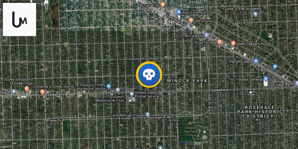 1 killed in a shooting near the 15400 block of Stout St in Detroit, Michigan. Police say the victim is an unidentified man in his early 20s. The shooter fled the scene on foot southbound toward Stout Street.