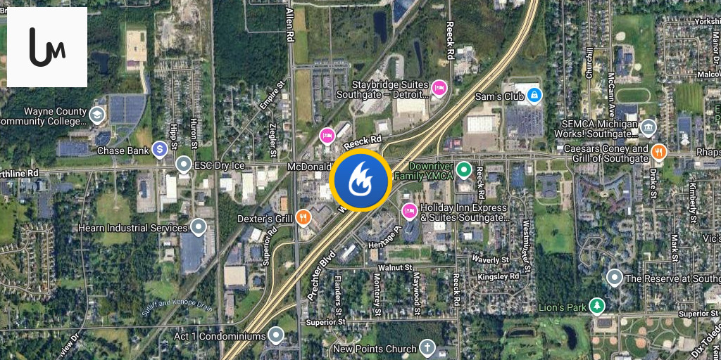 Damage to a Motel 6 in Southgate, Michigan after a fire at the property today. A firefighter was injured as crews responded to the blaze this morning